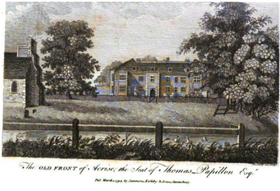Thomas and Jane Papillon purchased Acrise Place in 1666 for £6,000, and their family maintained ownership for multiple generations until 1850.