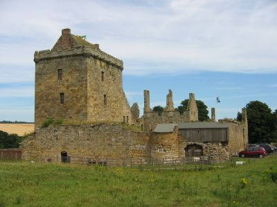 The Sibbald family constructed the initial fortified structure in the 1360s, which included a tower house at the northwest corner of the courtyard.
