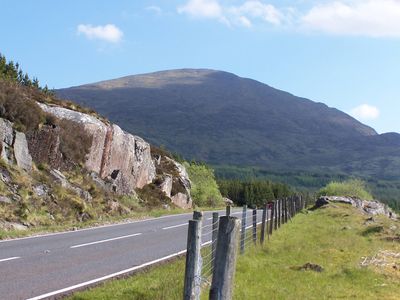 The eastern side of the mountain displays pronounced crags at Coire na h-Uamha, while coniferous plantations cover the lower slopes up to 400 meters.