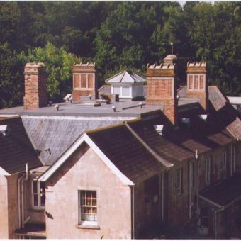 The house maintains the architectural traditions of Hampshire estates, with symmetrical design, formal gardens, and outbuildings including stables and a cowhouse.