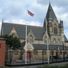 The Gothic Revival building features architectural elements of a former church, including preserved ecclesiastical details and a grand interior performance space.