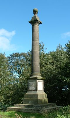 The column, constructed in 1814, commemorates British military victories and carries inscriptions honoring Pitt, Wellington, Nelson, and Henry Collingwood Selby.