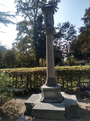 The memorial survived the 1941 bombing that destroyed most of Bromley Parish Church, remaining intact while the interior bronze tablet was lost.