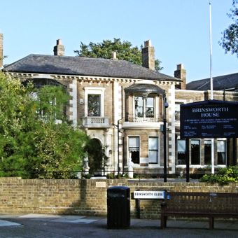 Brinsworth House is a residence for retired entertainment professionals in Twickenham, southwest London, spread across three floors with 32 rooms. The facility includes several communal areas such as a restaurant with conservatory, a library, and a stage for performances.