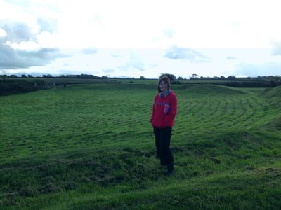 Castell Bryn Gwyn is a circular earthwork enclosure featuring a substantial rampart that rises prominently from the surrounding landscape and encloses a large interior space. The site was originally built for ritual purposes but was later adapted and occupied as a settlement.