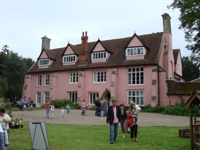Clare Priory is a medieval friary in Suffolk with several buildings dating from different periods. A 14th-century house stands at the center of the grounds, surrounded by gardens along the banks of the River Stour.