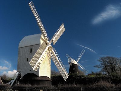 The Clayton Windmills consist of two structures named Jack and Jill, positioned high above the village of Clayton, seven miles north of Brighton.