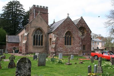The Church of All Saints features a square tower with six bells and includes elements constructed with local red Permo-Triassic rock materials.