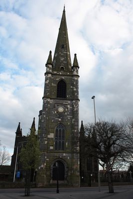 The Church of St. Thomas and St. Luke stands at the highest geographical point of Dudley on High Street, featuring a neo-Gothic architectural design.