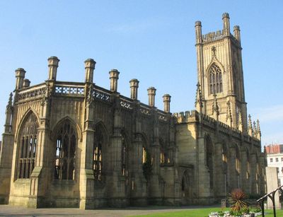 The roofless building remains open to visitors and functions as an exhibition space, managed by the organization Bombed Out Church since 2014.