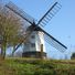 Cobstone Windmill is a smock mill on a hill near Turville in Buckinghamshire, England, distinguished by its slender wooden construction and well-preserved sails. The mill sits on a tall frame of vertical boards that supports a rotating cap with the sails, forming a sharp profile against the sky.