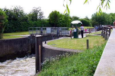 A free car park serves visitors at the lock entrance, while a weekend kiosk during summer months provides refreshments for lock observers.