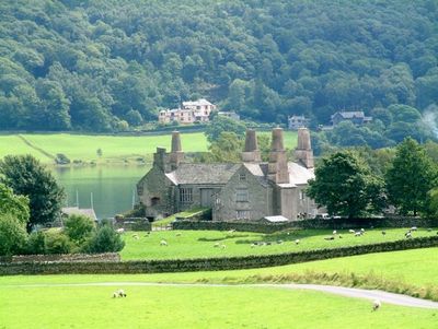 While owned by the National Trust, the building functions partly as a farmhouse and sailing club facility near Coniston Water.