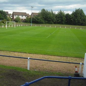 Creamery Park features a grass surface field, a clubhouse, and floodlit five-a-side pitch located behind one of the goals.