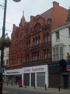 Architect Frank Caws designed these buildings in 1889, completing their construction in 1891 with brick materials from David and John Rankin and terracotta by Edwards.