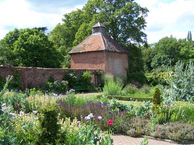 The gardens span 3.63 hectares of parkland, featuring a walled garden, ornamental trees, herbaceous borders, and historic Grade II listed buildings.