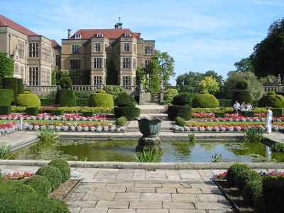 Japanese gardeners created formal gardens with ornamental lakes and Japanese maples, including a traditional tea house within the extensive grounds.