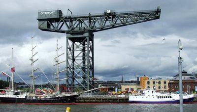 The steel structure represents Glasgow's industrial legacy and remains one of eleven giant cantilever cranes still existing across the globe.