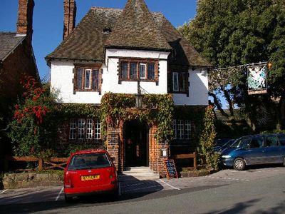 The George and Dragon is a listed pub in Great Budworth built from brick with rendered upper walls and clay-tiled roofs spanning three bays across two storeys. The interior layout divides the space into separate dining and service areas to accommodate guests comfortably.