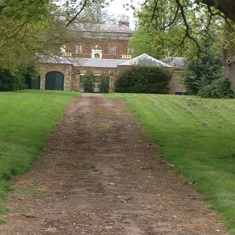 The grand portico, typically positioned at the entrance of such residences, stands at the rear of Eydon Hall instead of the front.