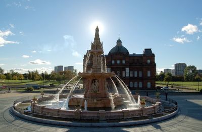 The People's Palace museum within the park presents exhibits about Glasgow's social history through artifacts, photographs, and interactive displays.