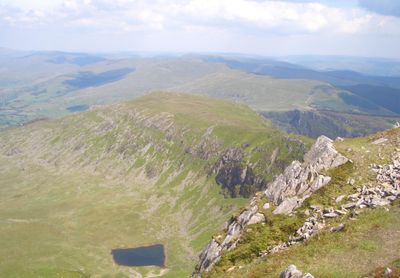 The position of Gau Graig offers unobstructed views of neighboring peaks including Mynydd Gwerngraig, Mynydd Moel, and the main Cadair Idris summit.