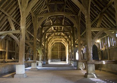 Winchester College built this barn between 1425 and 1427 as an agricultural storage facility to produce income. The structure dates from a time when such large wooden buildings were still commonly constructed in England.