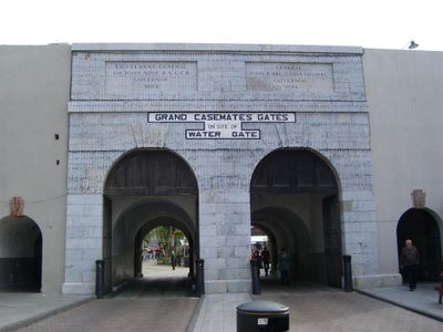 The gates lead directly to Main Street and Grand Casemates Square, where visitors find numerous restaurants, shops, and commercial establishments.