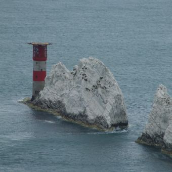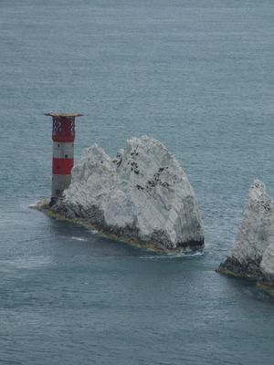 Needles Lighthouse, Maritime lighthouse on the western end of Isle of Wight, United Kingdom