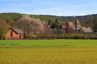 The estate included 113 hectares of parkland with a kitchen garden, fernery, shrubbery, waterfalls, streams, and bridges designed by James Pulham.
