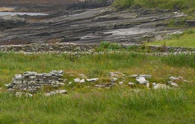 The remains of Linton Chapel stand on the eastern coast of Shapinsay, featuring stone walls that mark the location of an ancient religious structure.