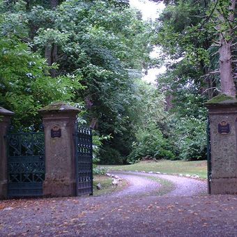 The mansion incorporates the Munro clan heritage through decorative elements, including an eagle emblem fireplace and specific architectural details from 1876.