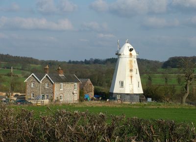 The mill contains an internal wooden machinery system with three pairs of underdriven millstones, distinguishing it among England's surviving windmills.