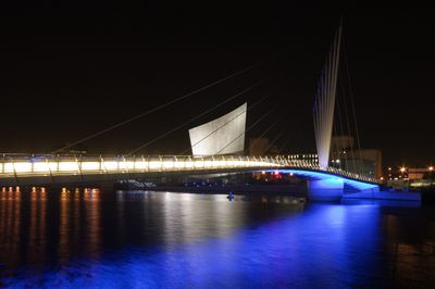 The footbridge links multiple cultural destinations, including The Lowry theatre, Imperial War Museum North, and the BBC broadcasting facilities at MediaCityUK.