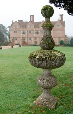 The gardens once contained geometric yew topiary and pathways following design principles attributed to Lord Bacon's landscaping concepts.
