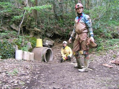The final section of the cave connects to the surface through a shaft sealed by a locked manhole cover, creating an unusual exit point.
