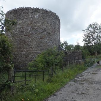 The Nantyglo Round Towers include two circular stone structures with cast iron fittings, positioned at opposite corners of Roundhouse Farm.