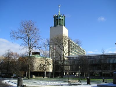 The construction of this administrative center began in 1960 after replacing a Victorian Town Hall, with completion in 1967 and royal opening in 1968.
