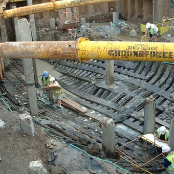 The Newport Medieval Ship is a merchant vessel from the 15th century whose wooden structures were discovered during construction work in 2002 along the River Usk. The 35-meter-long ship still displays evidence of its working life at sea.