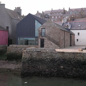 The Pier Arts Centre exhibits British modern art across two connected buildings situated along the historic waterfront of Stromness harbor.