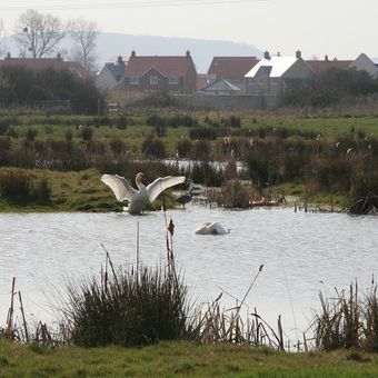 The 150-acre reserve on the Severn Estuary features two large pools, several ponds, grazing marsh, hay meadows, and hedgerows between Royal Portbury Dock and Portishead.