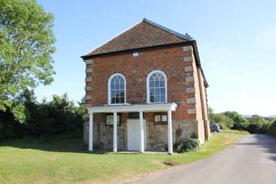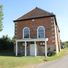 The red brick building features a symmetrical main frontage with two bays, rounded headed windows, and an external stone staircase along Town Lane.