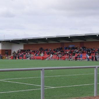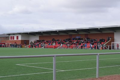 The football ground features a third-generation full-size outdoor pitch with floodlights and a main stand containing 500 seats connected to a club building.