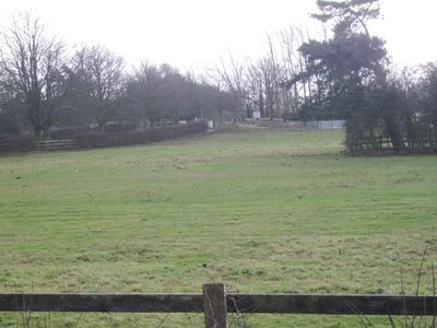 The castle mound stands on private property along Goldington Road, three miles east of Bedford town center, visible from the A428 roadway.