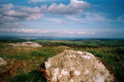 Sancreed Beacon is an archaeological site on the Penwith peninsula in Cornwall, England, with stone burial structures and mounds located on the summit. The remains show where ancient people buried their dead and where they lived during the Bronze Age.