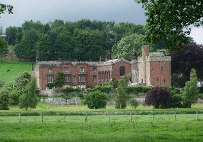Rose Castle includes four irregular ranges around a central courtyard, with red sandstone blocks forming the structure's distinct architectural elements.