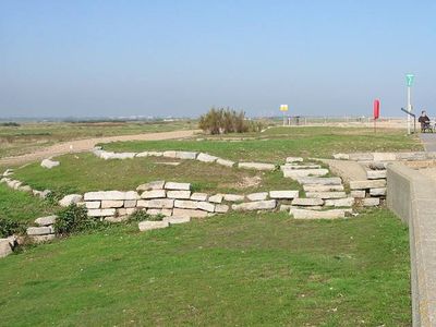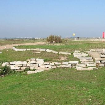Visitors can access the remaining foundation structures during low tide along the beach, approximately one mile north of Deal Castle.