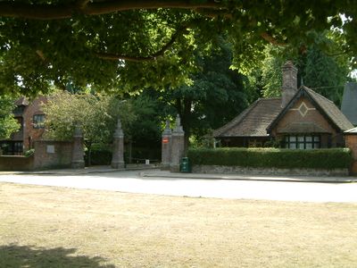 The entrance features a formal avenue lined with mature lime trees, planted during the original estate development to create a grand approach.