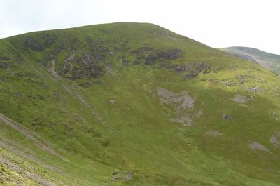 The mountain connects to neighboring peaks Crag Hill and Scar Crags through clear paths, with the main ascent route starting from the Coledale Valley.