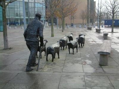 Sheep on the Road, Bronze sculpture at Waterfront Hall, Belfast, Northern Ireland